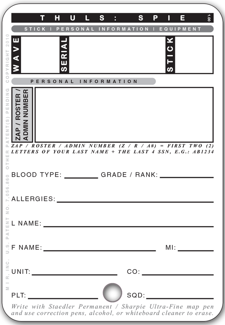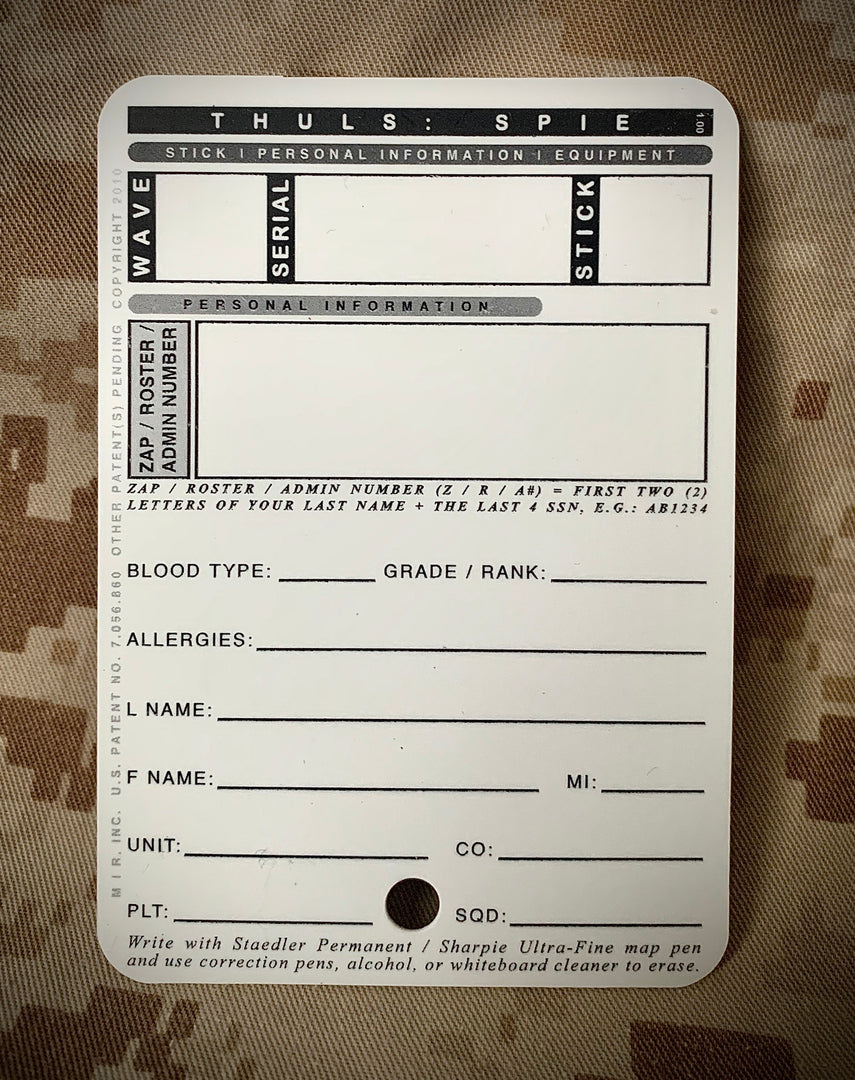 Developed to provide Marines and their leaders a tool to maintain important information on their person that can be quickly provided during MACO procedures, casualty transport, etc. to account for personnel and serialized equipment.
